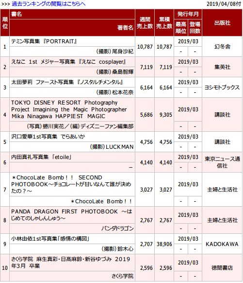 近年の写真集売上まとめ(累計)