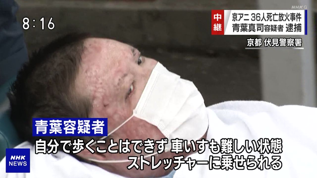 京アニ放火事件、大やけどの青葉容疑者「二度と声出ないと思った…」